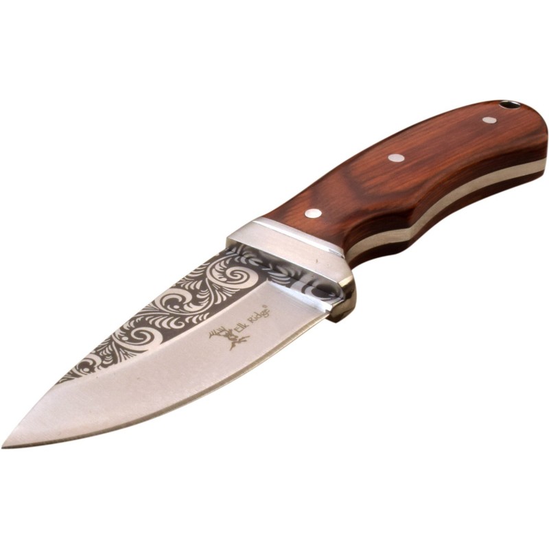 Elk Ridge Etched Blade Hunting Knife - Wooden Handle